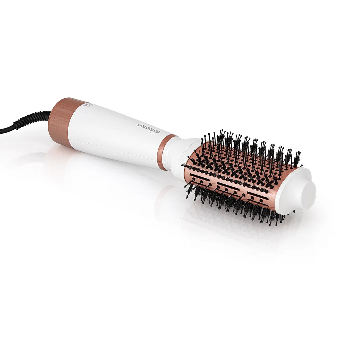 Cepillo Secador y Voluminizador 3 en 1 Potencia 1200 watts Doble función, reduce a la mitad el tiempo de uso, Seca y Peina. Generador de Iones Negativos, cabello libre de frizz Regulador de temperatura + aire frío Placas recubiertas con cerámica Dos tipos de cerdas, naturales y nylon, desenredan y voluminizan. Diseño ovalado para alisar y darle volumen al cabello Ventilaciones únicas que permiten un secado en menor tiempo. Cable giratorio, Como en todos sus productos para el cabello, Siegen incorporo en su ondulador pinzas de cerámica y turmalina, que permiten darle un cuidado extra a tu cabello, para mantener tu melena saludable y con más brillo.