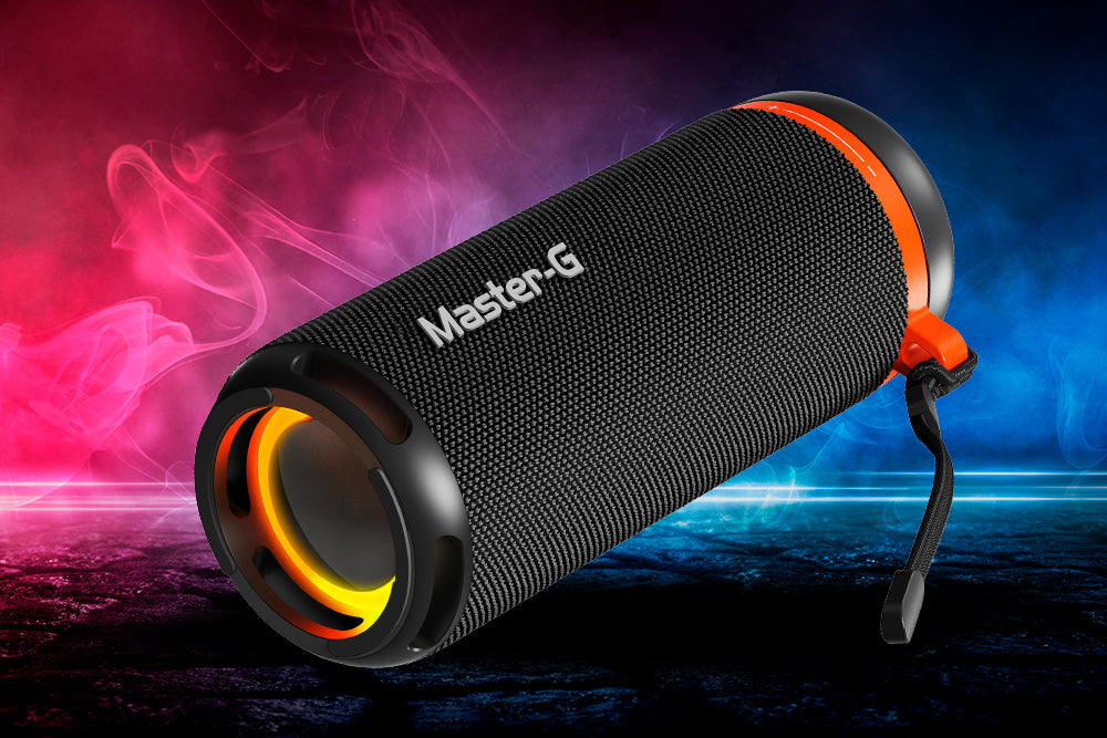 Para que tu música favorita nunca pare, acompaña tus viajes con el mejor sonido. Nuestros Parlantes Portátiles Master-G tiene la comodidad para estar contigo en cualquier ocasión y lugar con su forma cilindrica y cordel colgante.